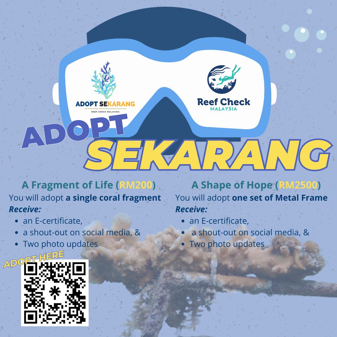 With a minimum donation of RM200, your contribution will help us rehabilitate degraded coral reef areas and support their maintenance. You’ll also receive an e-certificate, a shout-out on social media, and quarterly photo updates for a year.