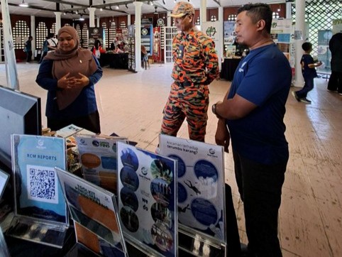 Ella and Shahir (RCM Tioman team) briefing a booth visitor