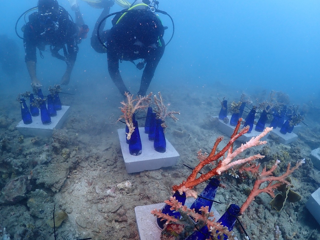 Some of the coral blocks that were populated at the new site